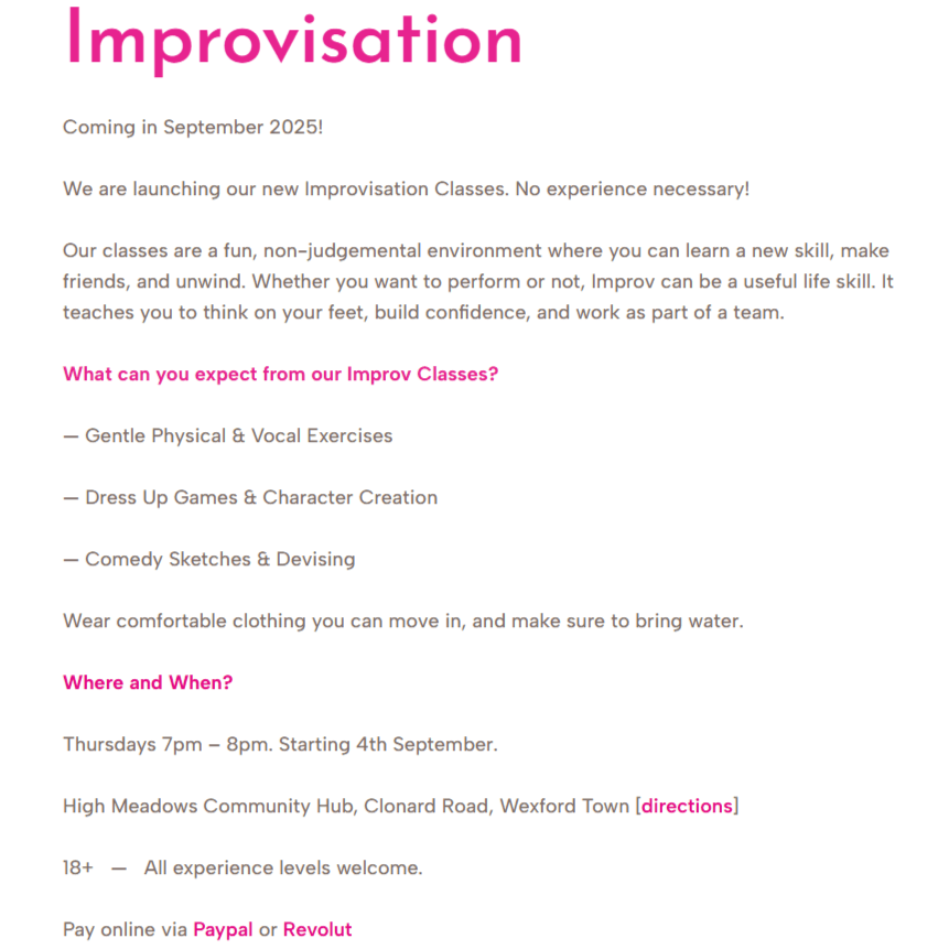 Exciting announcement everyone! Inclination Productions is officially back September 2025! We’ve got a brand new set of classes to help you let your silly side out!
